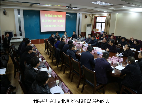 11月22日上午,“院所合作协同育人”会计专业现代学徒制试点签约仪式在办公楼四楼会议室举行。17家签约单位代表与学院院领导及各处室、系部负责人参加签约仪式。党委书记张志华主持。