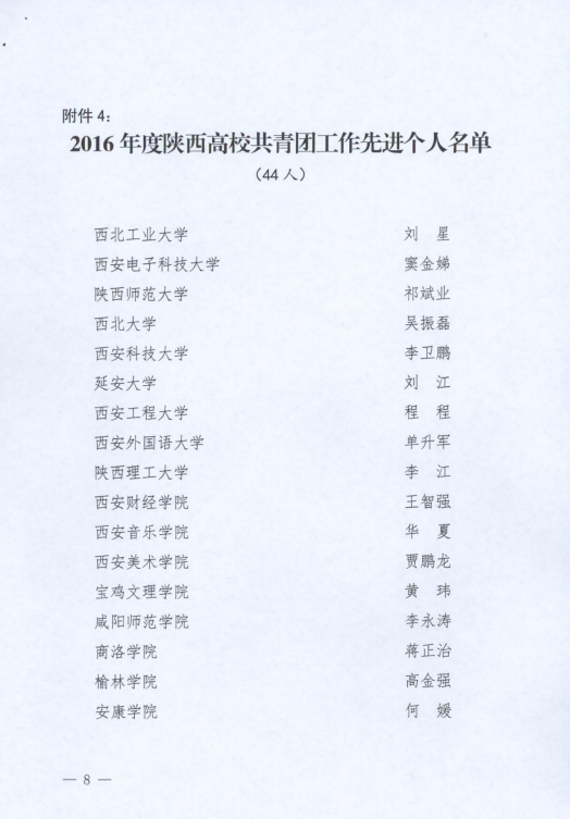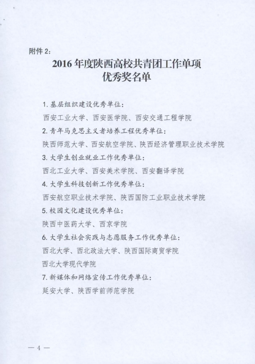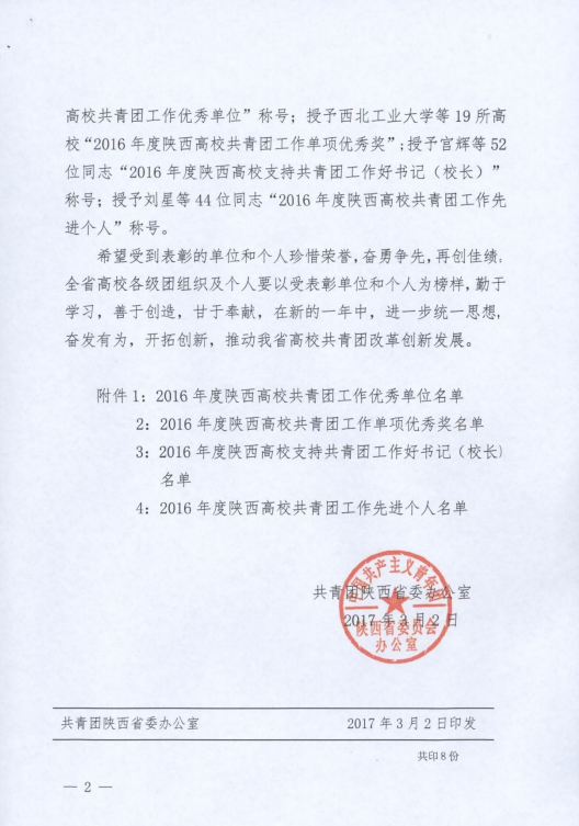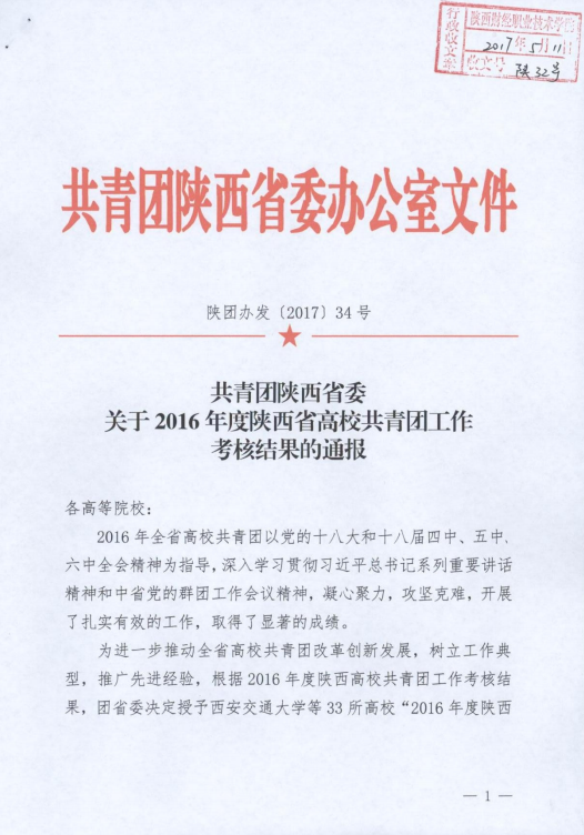 共青团陕西省委关于2016年度陕西省高校共青团工作考核结果的通知