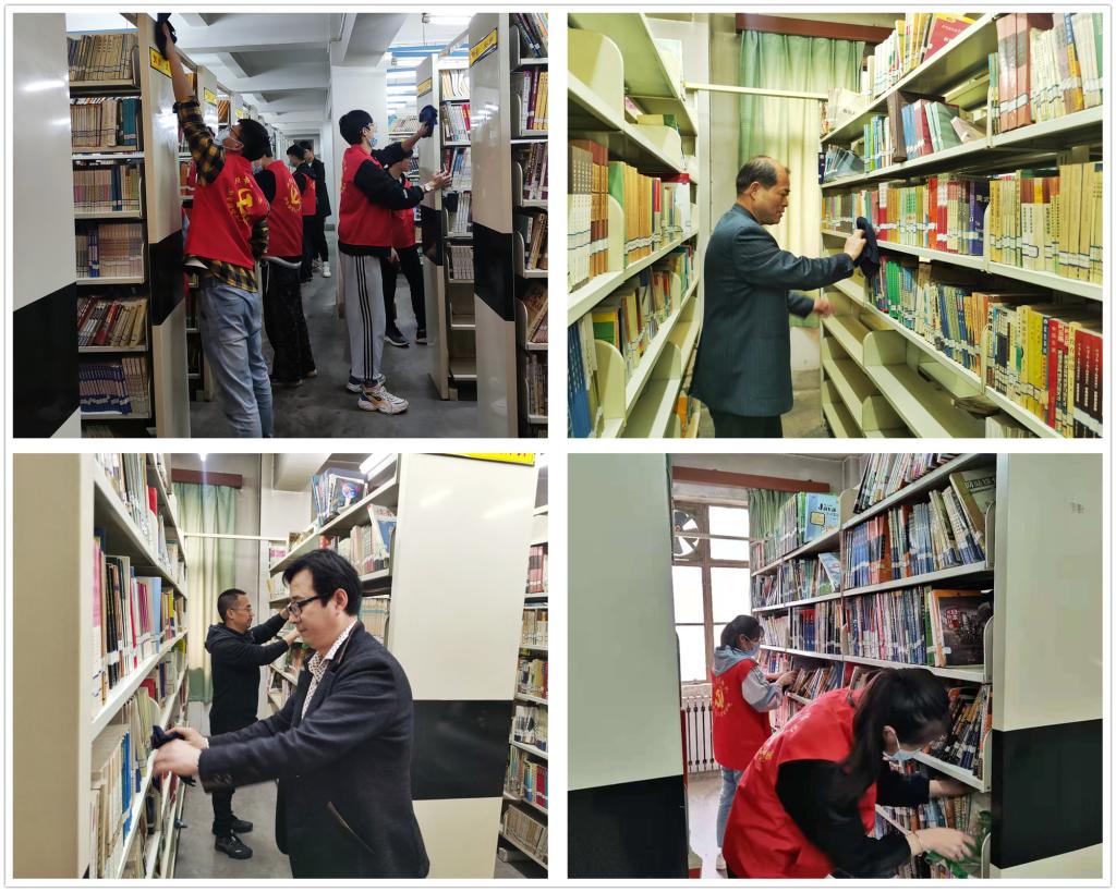本次志愿服务活动,大家积极听从图书馆赵幽兰、赵蓓的安排,认真仔细的对图书馆二、三、四楼书架进行图书整理,书架擦拭,地面清洁等,活动中曹耀辉带领师生志愿者一起动手,学生党支部书记谢卫朋及王立户现场指导志愿服务者分工协作,认真仔细,一丝不苟的清理卫生死角,最终使各楼层图书书架及地面卫生干净整洁、焕然一新。大家不怕脏、不怕累、热情高涨的劳动场面得到了图书馆老师们的高度肯定与赞许。