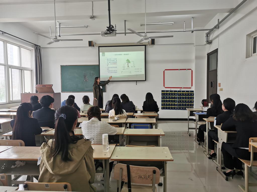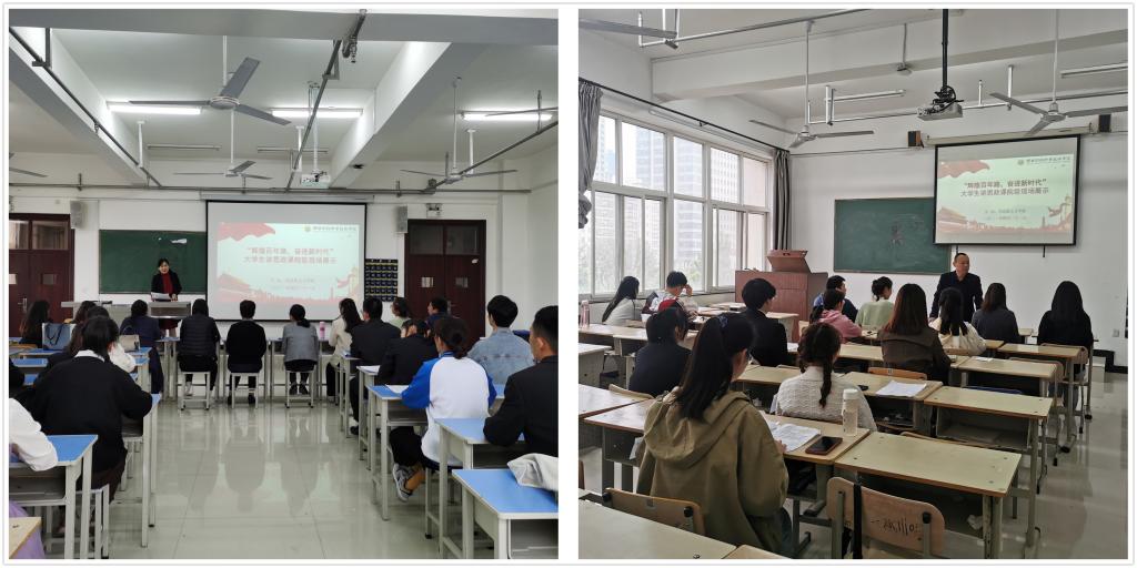 4月21日下午,由马克思主义学院主办的“辉煌百年路,奋进新时代”——大学生讲思政课院级现场展示活动在综合楼412、413教室顺利举行。马克思主义学院院长陈红梅、党支部书记陈志宏和副院长殷蓬勃现场观摩指导,我院全体专兼职思政课教师和部分学生代表参加活动。