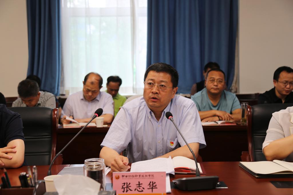 就如何落实好巡回指导组的要求和意见,进一步扎实有效推进学院党史学习教育取得实效,党委书记张志华从六个方面对党史学习教育进行了再动员再部署。