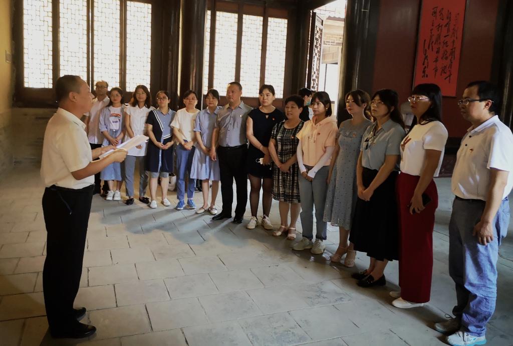 在中厅鲜红的党旗下,全体党员在党支部书记陈志宏的带领下,神情庄重,紧握右拳,重温入党誓词。宣誓的党员们仿佛又回到了入党的那一刻,并进一步坚定了对党忠诚、为人民服务的初心,巩固了为党奋斗终生的信念。随后,陈志宏为全体党员作了题为“重温革命历史、传承红色精神”的现场党课,他指出,安吴青训班培养出的广大爱国青年不怕艰难困苦、勇于探索的革命精神,他们不计较个人荣辱得失、服务人民、甘于奉献的革命精神,他们忠于中国共产党、为理想而奋斗的革命精神,已经成为了中国共产党非常宝贵的精神财富,要求党支部党员通过参观学习,思想受洗礼,行动有提升,把学习成效转化为工作动力和成效,将革命先烈的精神转化为报国热情和爱国行动。最后,党员们随着工作人员的详细讲解参观了培训班创办期间的重要设施、留存实物及文献资料,详细了解了当时青年训练班的创建、发展和对革命的贡献,在一幅幅记载着革命斗争史的图片资料和一件件留着红色印记的物品前,一个个震撼人心的历史故事,让大家受到了一次深刻的革命传统教育,切身感受到先辈们坚贞不渝的理想信念和勇往直前的战斗精神。