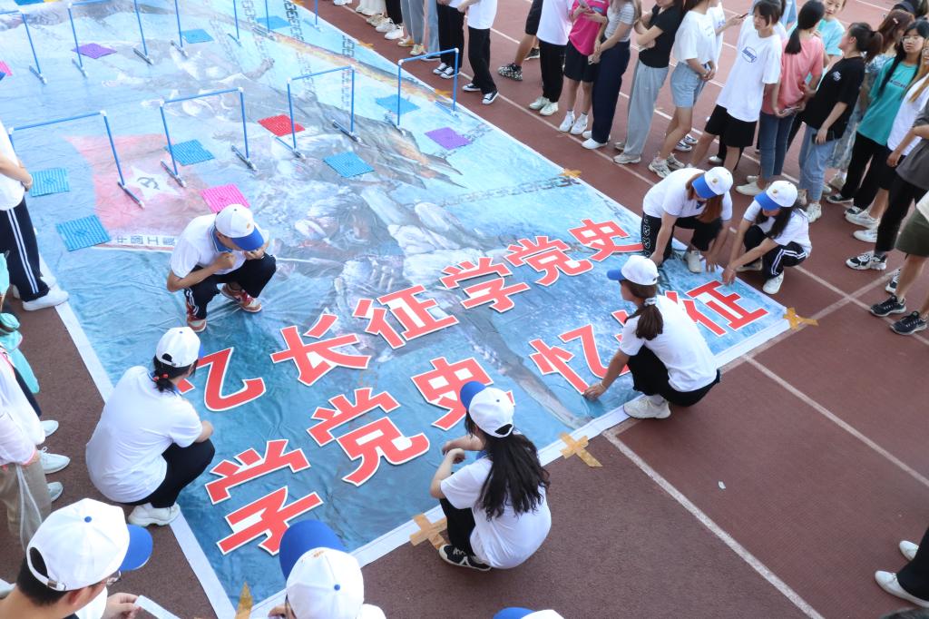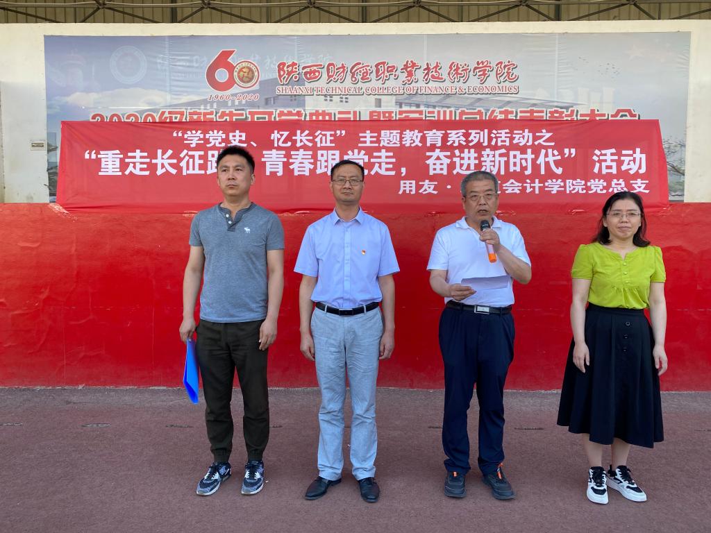 6月4日下午,用友·新道会计学院在操场举办“学党史、忆长征”主题教育系列活动之“重走长征路,青春跟党走,奋进新时代”活动。用友·新道会计学院院长李启明,党总支书记曾贵荣,副院长缑宇英,全体教职工党员以及学生代表共计500余人参加了此次活动。活动由团总支副书记张璐主持。