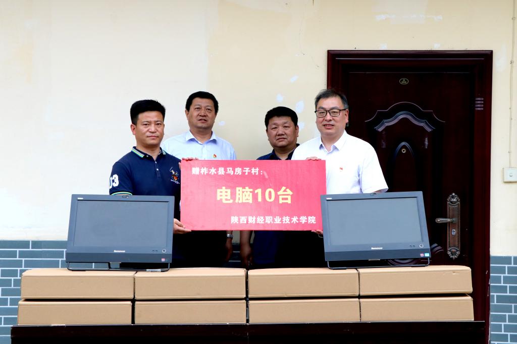随后,学院党委班子成员一行来到结对帮扶的马房子村,为马房子村捐赠电脑10台,帮助马房子村委改善和提升办公条件。