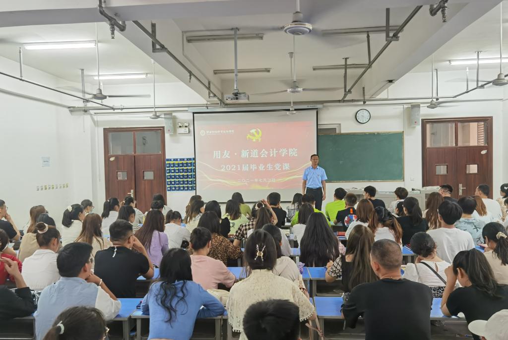 为进一步深化党史学习教育,强化毕业生党员学习党史,7月2日用友·新道会计学院党总支书记曾贵荣在综合楼214合班教室组织毕业生党员学习习近平总书记在庆祝建党100周年大会的重要讲话精神。