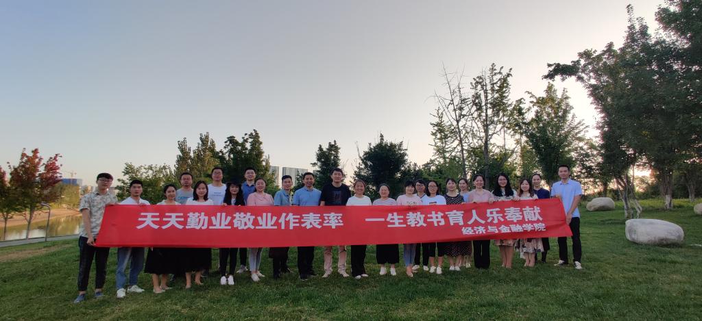 9月9日下午,经济与金融学院组织教职工在能源金融贸易区沣河金湾进行户外团建活动,庆祝教师节的到来。