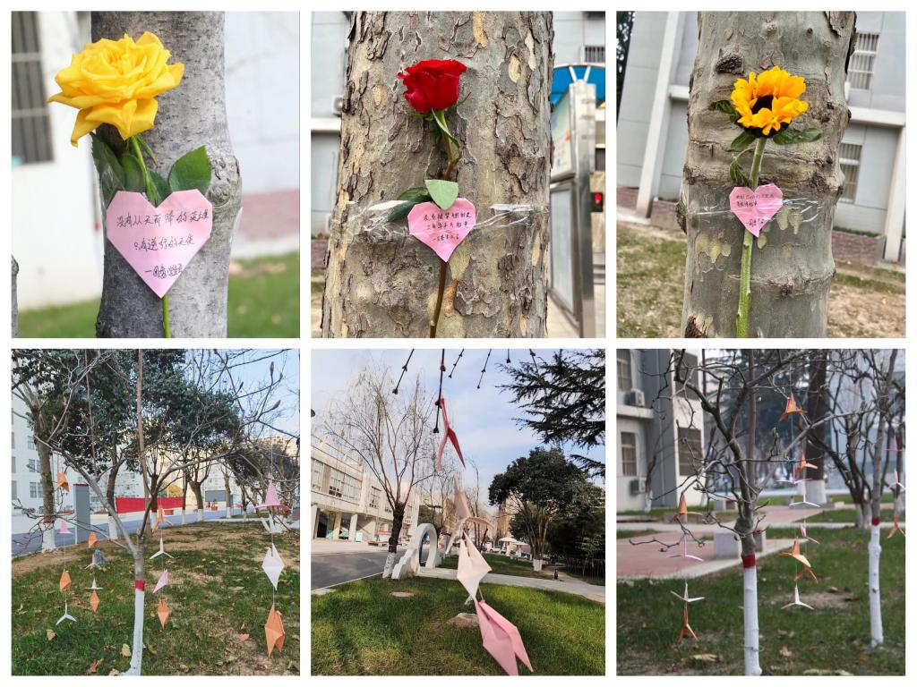 ——创新形式,营造阳光向上抗疫氛围。我校青年志愿者协会的志愿者们用鲜花和千纸鹤装点冬日校园,在寒冷的冬日里给师生送来一缕温暖,传递正能量。校园之声广播站的志愿者们积极响应号召,开展《疫情防控》专栏节目,向大家宣传疫情防控相关知识,与学生互动封校生活,帮助同学们树立抗疫必胜的坚定信心。各二级学院的志愿者利用微视频、微博、抖音、通俗易懂的标语等形式,开展形式多样的打赢疫情防控阻击战正能量传递活动,提高舆论引导实效,营造阳光向上抗疫氛围。