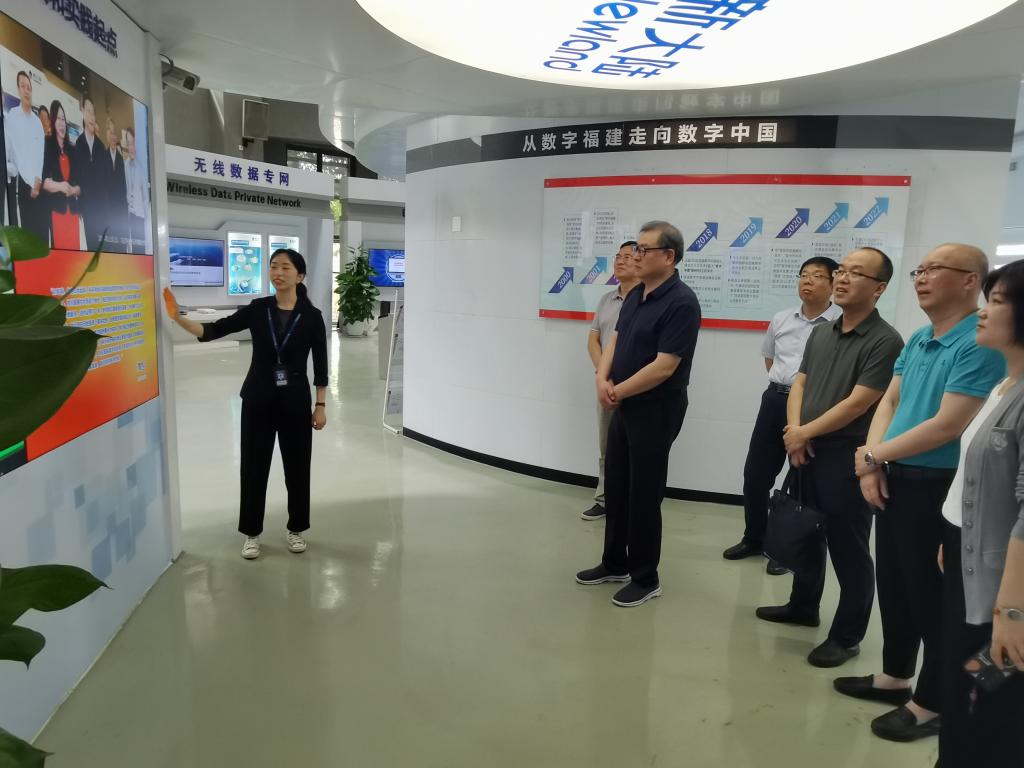 6月13日,程书强一行参观了新大陆时代科技有限公司展厅,了解了公司的从“数字福建到数字中国”的创办历史、企业文化以及其在数字商科、工业互联网、数字技能提升、现代物联网、大数据、人工智能、区块链技术等方面的先进做法和成功经验。在洽谈会上,程书强介绍了学校的专业设置、人才培养、办学特色、招生就业等情况,双方就“双高”建设、专业共建、产业学院、团队建设、双师培训及成果打造等方面进行了深入交流。