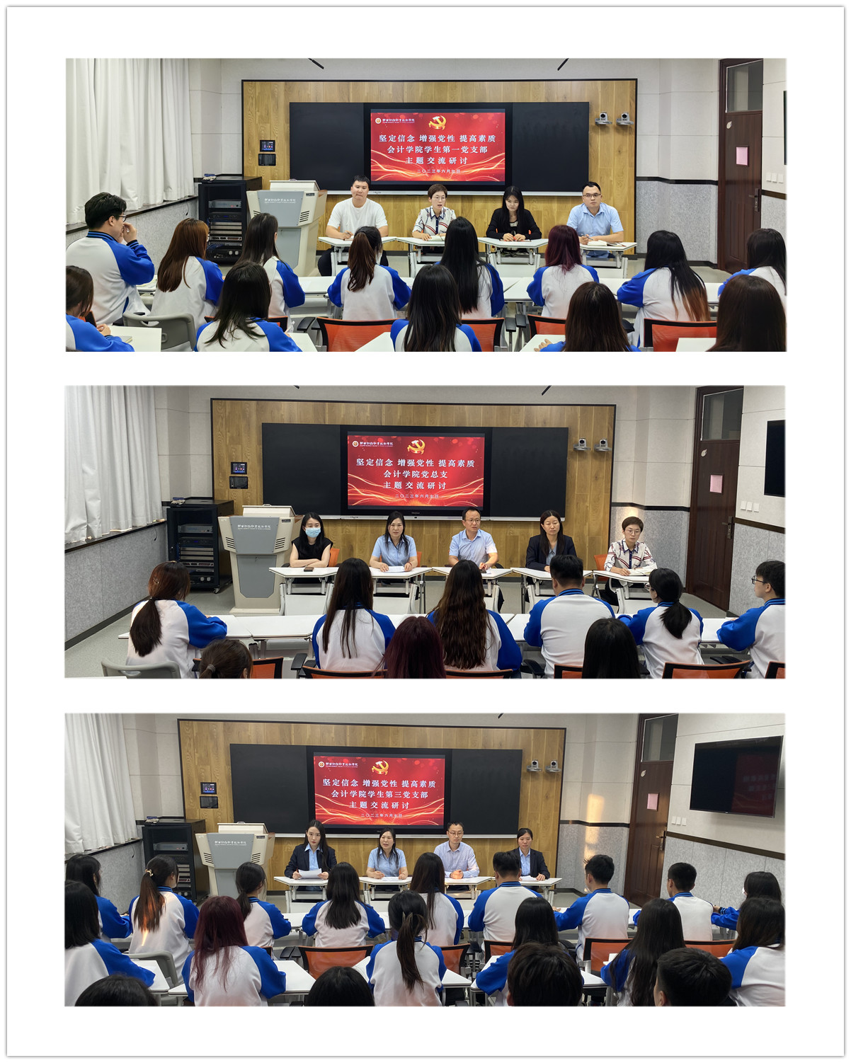 为加强党课培训班学员对党的认识,促进思想交流,切实提高其政治素质和理论修养,6月7日,会计学院党总支和优秀学员代表开展以“坚定信念、增强党性、提高素质”为主题的交流研讨,会计学院党总支书记贺适主持会议。