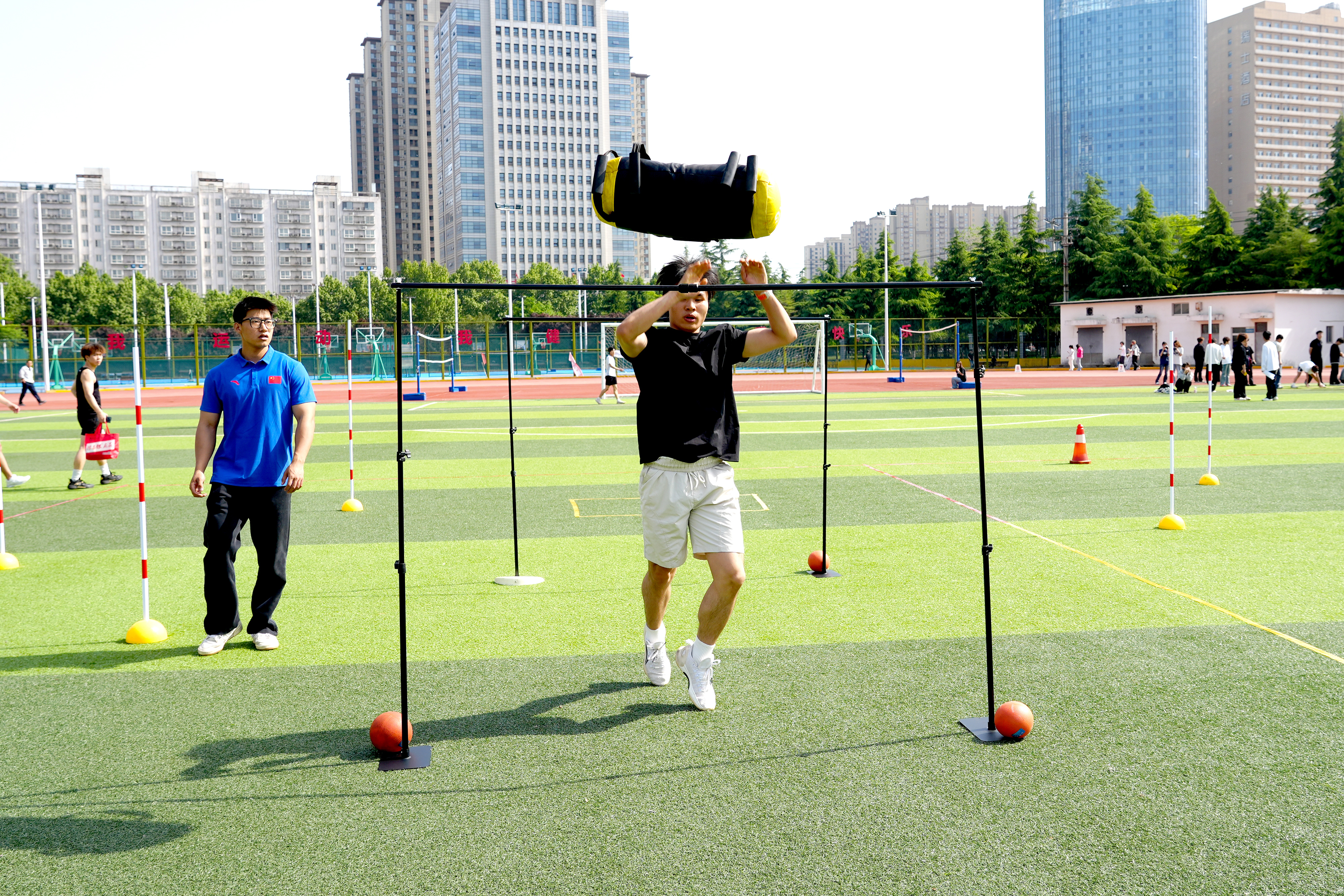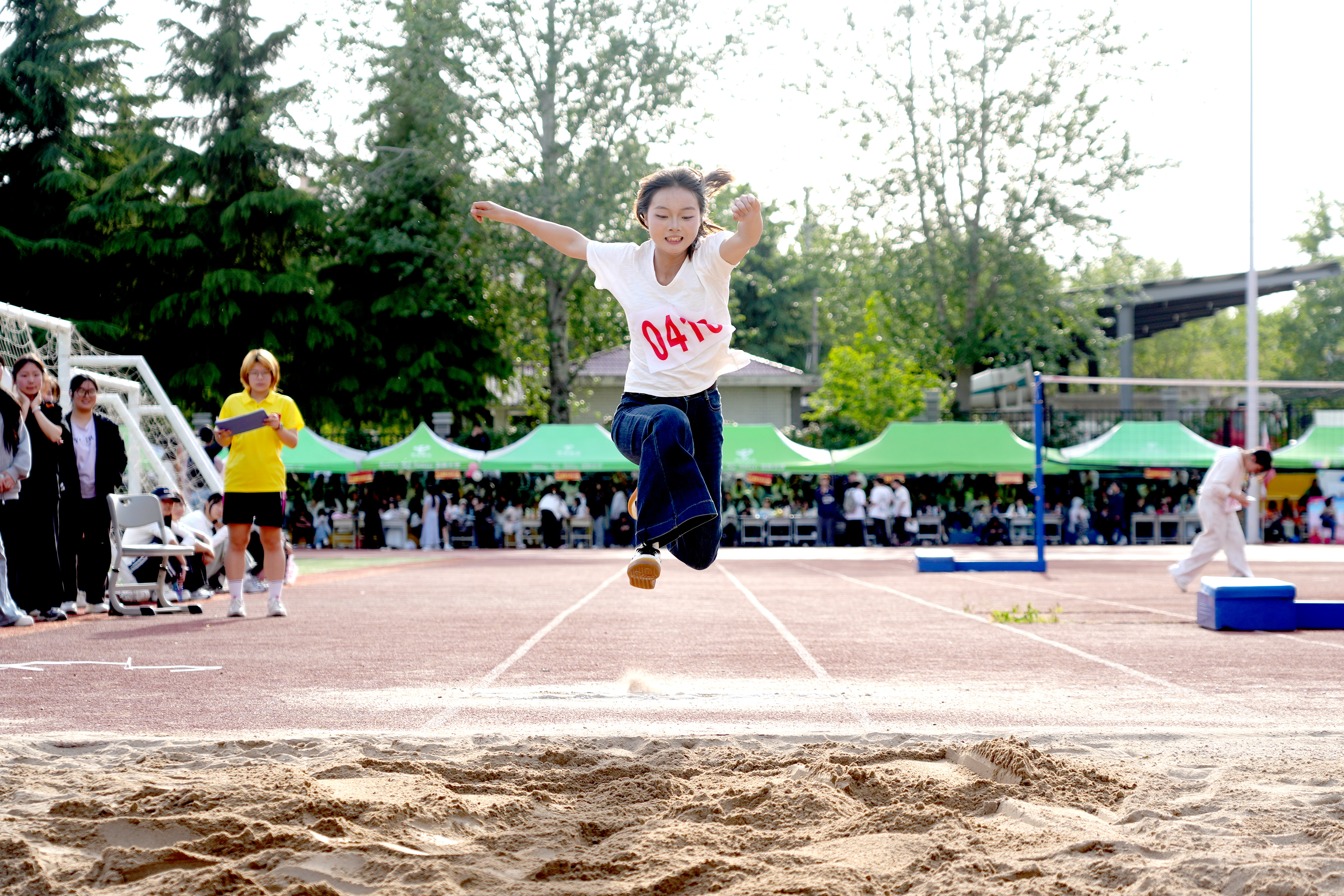 赛场之上,100米、200米、400米、800米、1500米等径赛项目竞速逐风,跳远、飞盘掷远等田赛项目展技竞力,动感五环、旱地龙舟等趣味项目欢乐开赛,跳短绳、运沙袋过杆等体适能项目同步亮相。本届赛事共设18个学生竞赛项目与5个教职工竞赛项目,各项赛事有序展开、精彩纷呈。