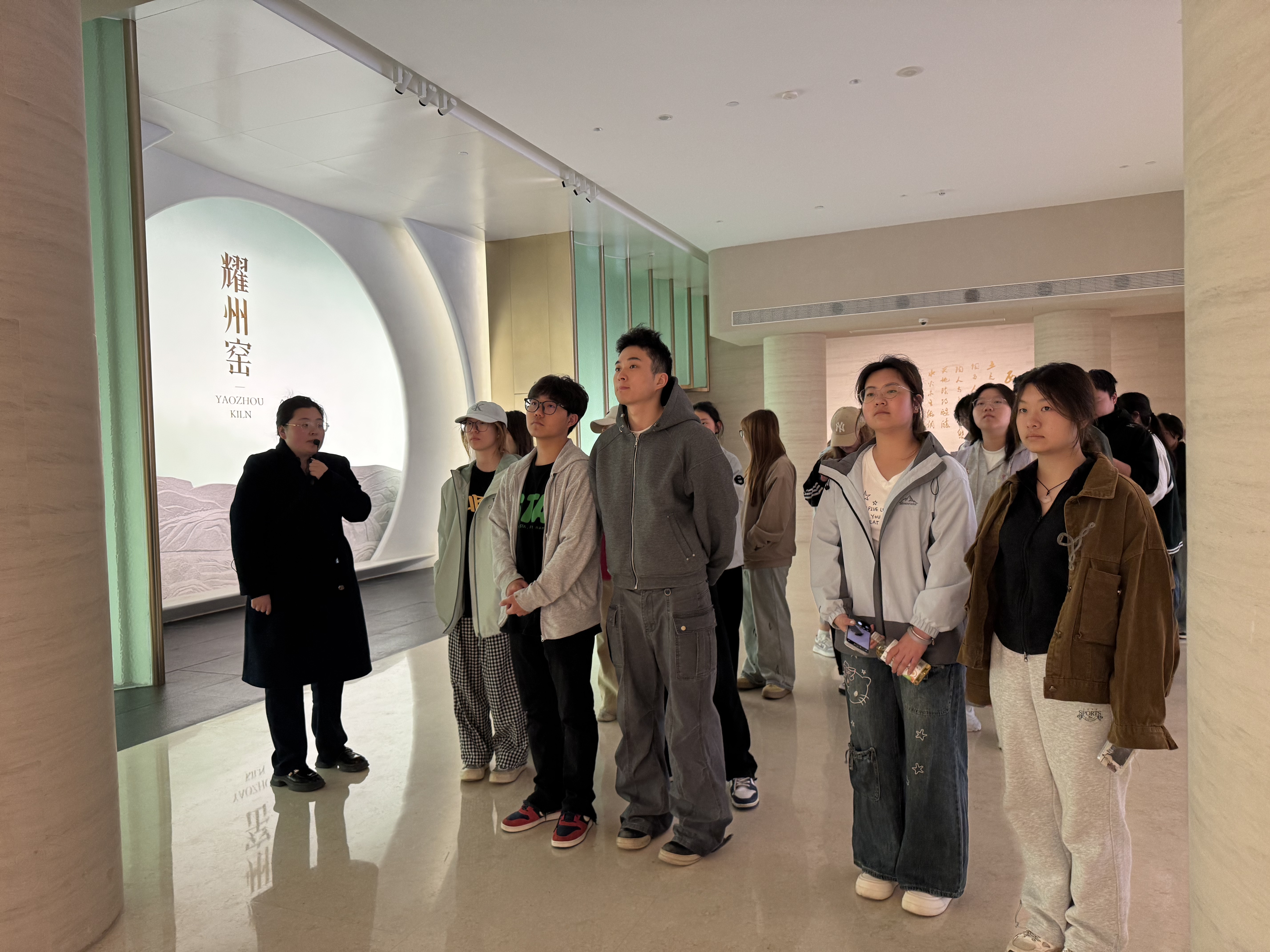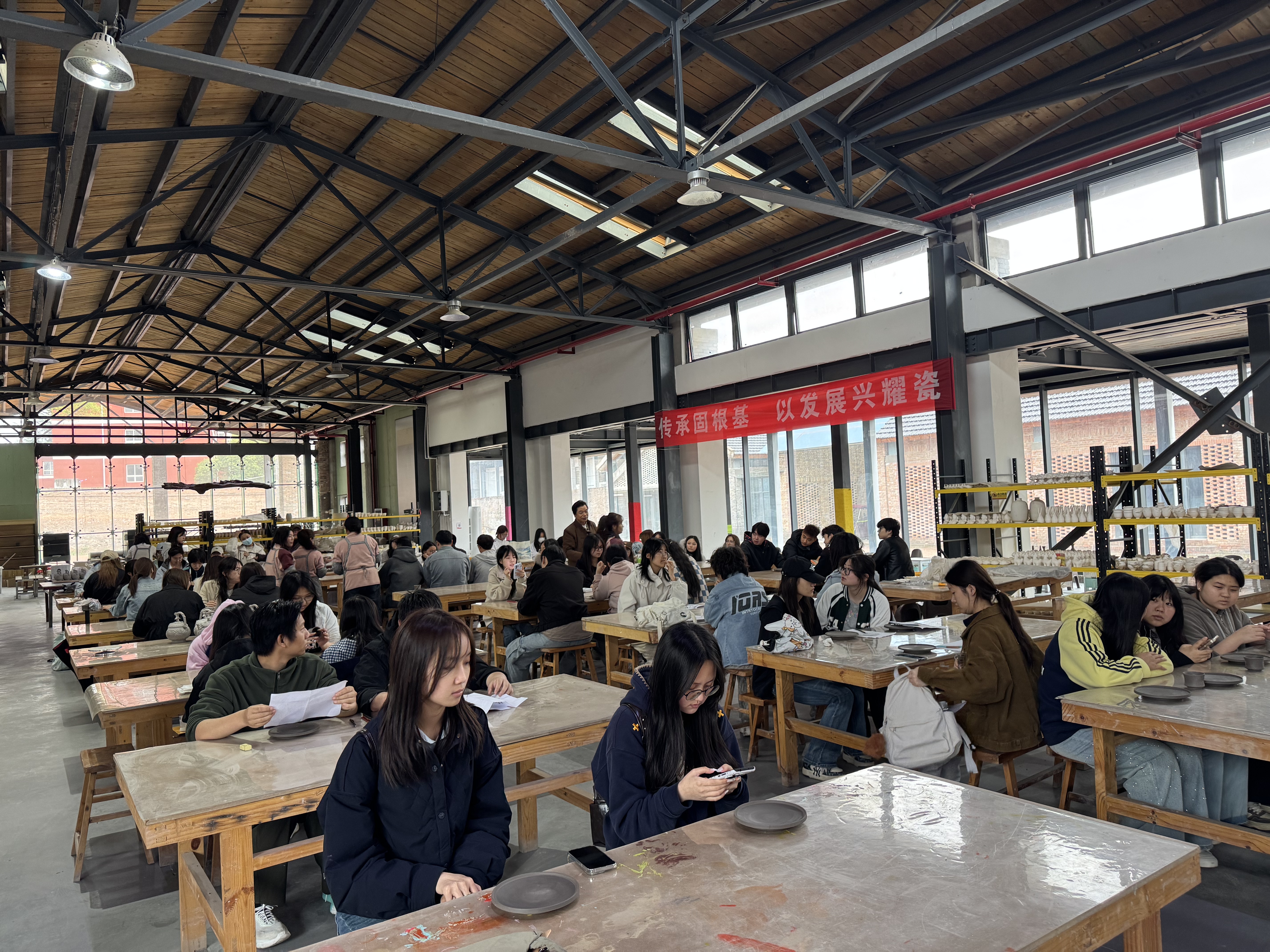 4月8日,研学团队首站抵达铜川耀州窑。在耀州窑唐宋陶业有限公司,师生深入生产一线,全程观摩原料加工、拉坯、修坯、施釉等传统制瓷工序,工匠们精湛娴熟的技艺与精益求精的匠心,让同学们深刻体会到传统工艺的坚守与传承。随后,大家走进耀州窑博物馆,系统了解北方青瓷代表的历史底蕴与艺术价值,夯实专业文化基础。在唐宋耀瓷文化产业园区,同学们在专业技师指导下,沉浸式体验耀州窑标志性单刀刻花技法,实现课堂理论与实操技能的有机结合。