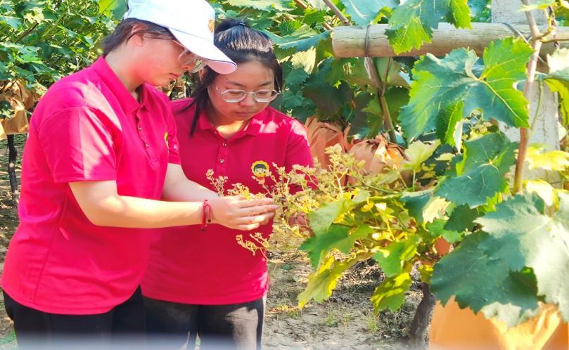 在田间劳作中,先行队发现了葡萄果实瘪小、叶子发黄和外表斑点等问题。这些问题对当地葡萄种植业产生了负面影响,威胁着作物的产量和质量。先行队立即采取行动,主动与当地农技中心取得联系,开展农技知识座谈会并诚心邀请技术专家前来实地指导。技术专家到达现场后,通过传授毗邻地区类似案例的经验和解决方案,并针对当地的种植现状提供了针对性的解决方案,帮助种植户们有效解决目前面临的难题,使种植户们受益匪浅。