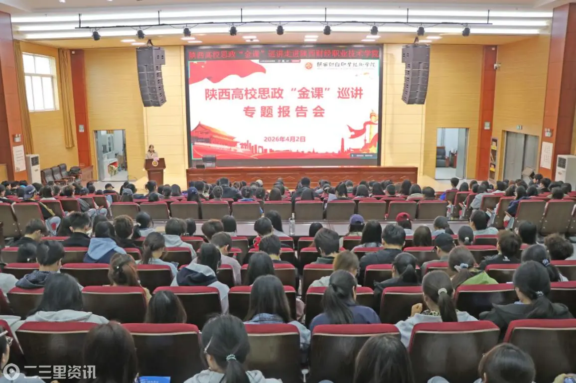 4月2日上午,陕西高校思政“金课”巡讲专题报告会在陕西财经职业技术学院学术报告厅举办。报告会邀请陕西高校思政“金课”讲师团骨干教师、西北农林科技大学马克思主义学院宋文杰副教授,长安大学马克思主义学院余猛副教授担任主讲。校党委副书记朱华斌,教务处、马克思主义学院、学生工作部、团委等部门负责人,陕西邮电职业技术学院教师代表,以及我校全体辅导员、专兼职思政课教师、青马工程学员和学生代表共500余人参加。活动由党委宣传部部长严丽丽主持。